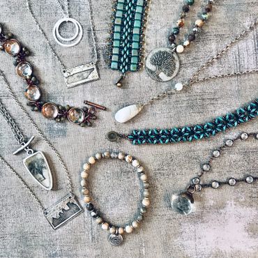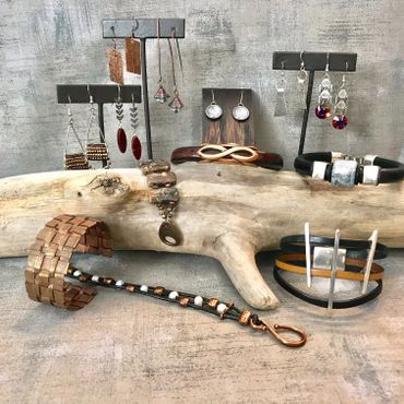 My work includes earrings, bracelets and necklaces made from metal, leather, glass, pearls, crystals and semi-precious gemstones. Custom design requests are welcome.